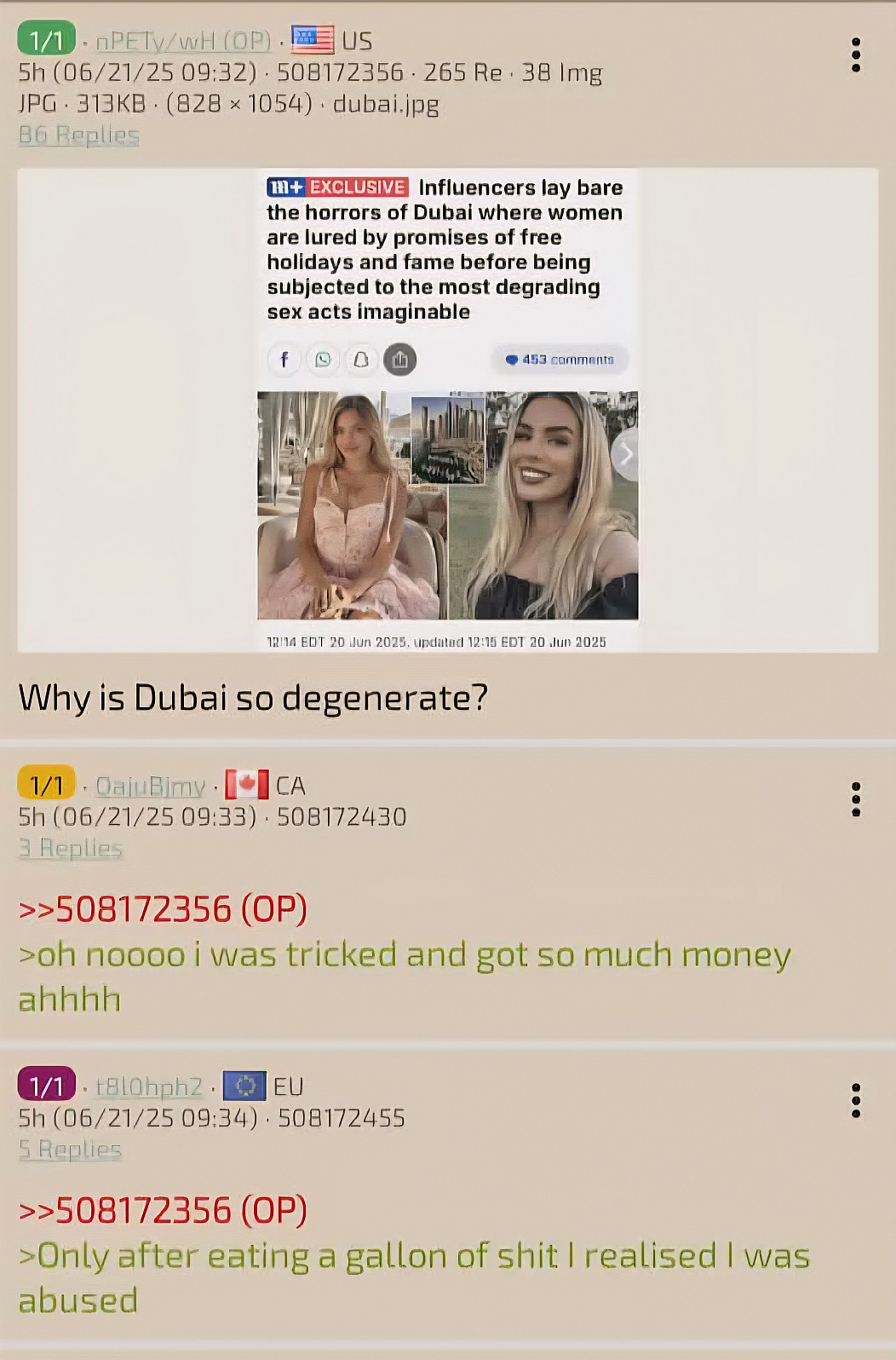 sonja 44929 07.10.2025 11:03:10 #720819 [+-] Piilota Suosittele Suomalaiset julkkis naisetkin käy siellä lomalla mutta oikeesti huoraamassa musuille