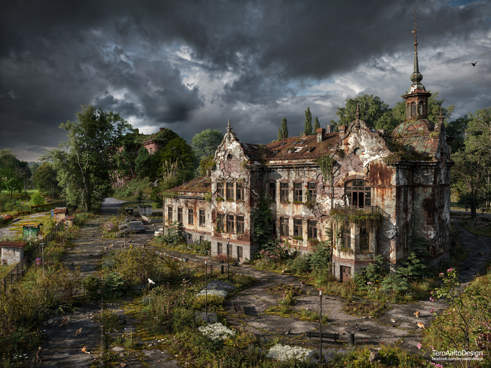 Kuva 1. Mitä helvetin mini dinosauruksia historiallisen museon takapihalla mönkii? Yllättävän hyvin säilyneet autot. Kuva 2. Taas jotain jättilintuja tai liskoja kauppakatu 4 katolla ja taustalla näkyvä "Olavinlinna" on kuitenkin säilynyt lähes ehjän näköisenä.
